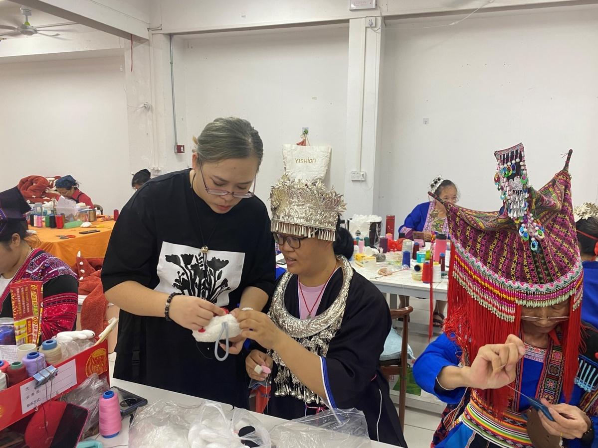 據(jù)繡房主管黃雙易介紹,繡娘來自漢族、壯族、瑤族、侗族等少數(shù)民族,有殘障人士,有40多歲的寶媽,還有60歲以上的老人。目前,繡房與當(dāng)?shù)貗D聯(lián)、殘聯(lián)合作,積極幫扶殘疾人,為照顧留守兒童的婦女提供了靈活就業(yè)的工作崗位,讓繡娘們在照顧家庭的同時還能得到一份不錯的收入。