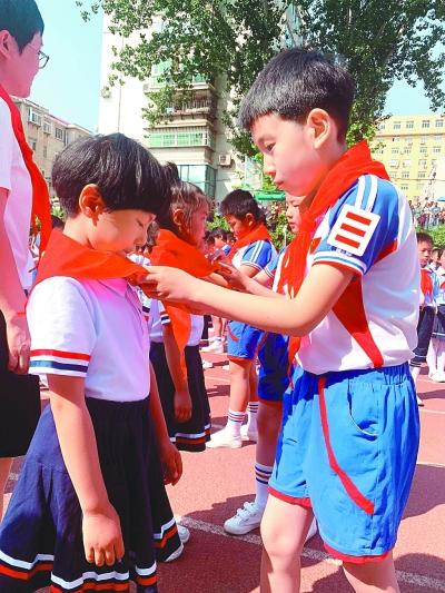 在天津河北區(qū)金湯橋會師公園,少先隊員們以小隊為單位參加“紅領(lǐng)巾追夢行動”,爭相完成“觀橋看城市發(fā)展”“訪歷史建筑傳愛國精神”“小眼睛看城市大文明”等任務(wù)。在河南鄭州,來自鄭東新區(qū)和三門峽市盧氏縣的城鄉(xiāng)少先隊員們手拉手結(jié)對子,分享學(xué)習(xí)焦裕祿精神、紅旗渠精神、愚公移山精神的心得體會。在黑龍江哈爾濱繼紅小學(xué)、浙江杭州郁達(dá)夫中學(xué)、江西新余水西逸夫小學(xué),《我和我的祖國》歌聲回蕩,少先隊員們用純真的童聲謳歌偉大時代,祝福祖國繁榮富強(qiáng)。