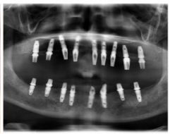 全口種植牙,并不是種植全口的種植牙,植入4至6顆種植體就能成功種植半口牙,至少植入8顆,即可對(duì)全口義齒提供足夠的支持,對(duì)頜骨骨量不足以植進(jìn)足足數(shù)目種植體以支持固定全口義齒的患者,可設(shè)計(jì)覆蓋式種植全口義齒。全口牙缺失做種植修復(fù),根據(jù)頜骨情況,植進(jìn)數(shù)枚或十幾枚植體,可較滿足地解決義齒的穩(wěn)定問(wèn)題,恢復(fù)咀嚼功能。針對(duì)半口/全口無(wú)牙患者,通過(guò)植入4顆/6顆/8顆種植體達(dá)到重建半口/全口牙齒果。