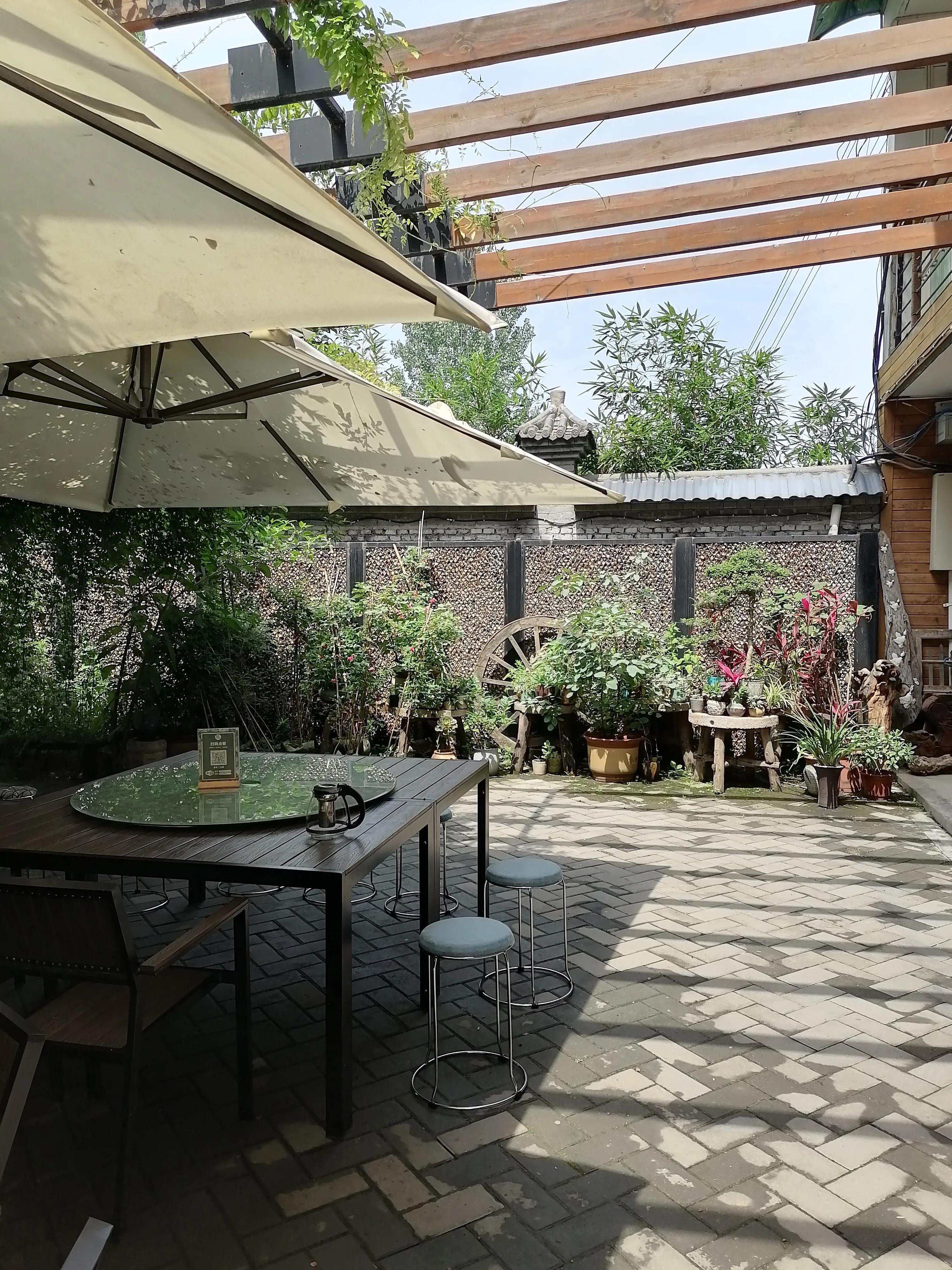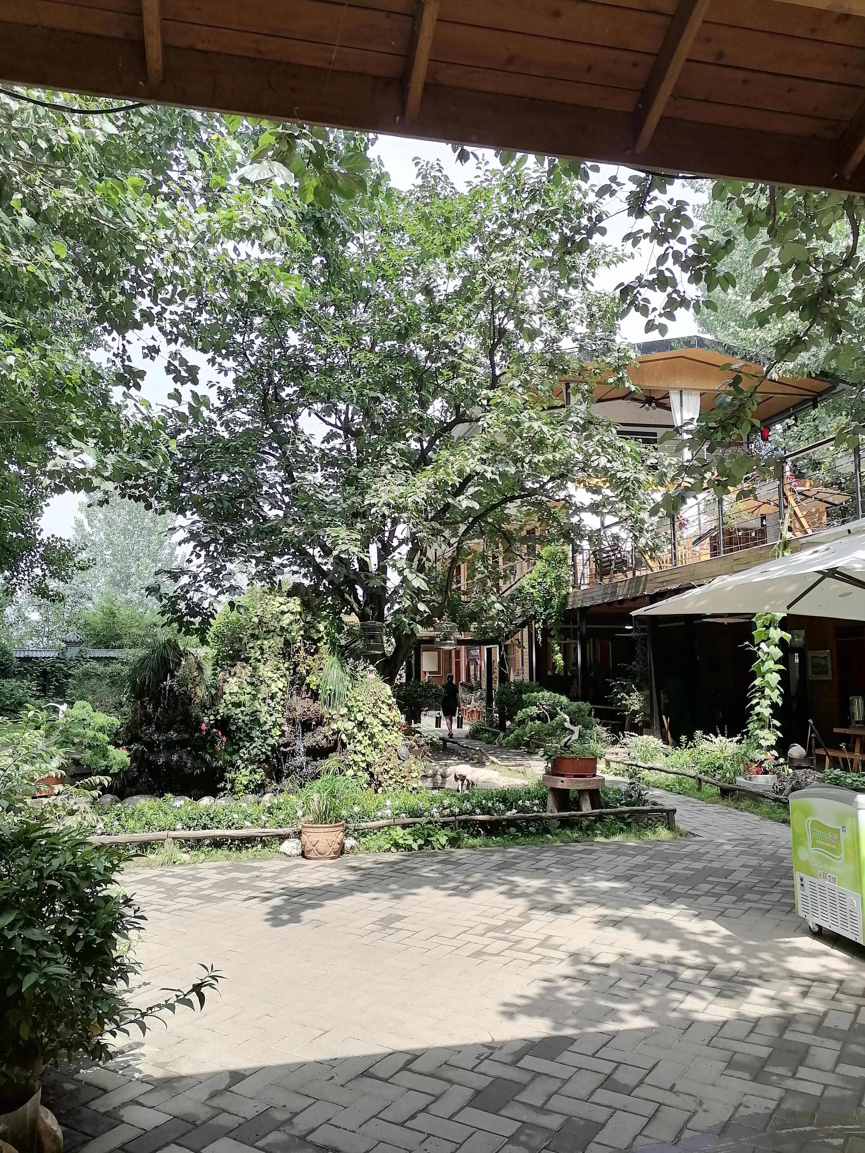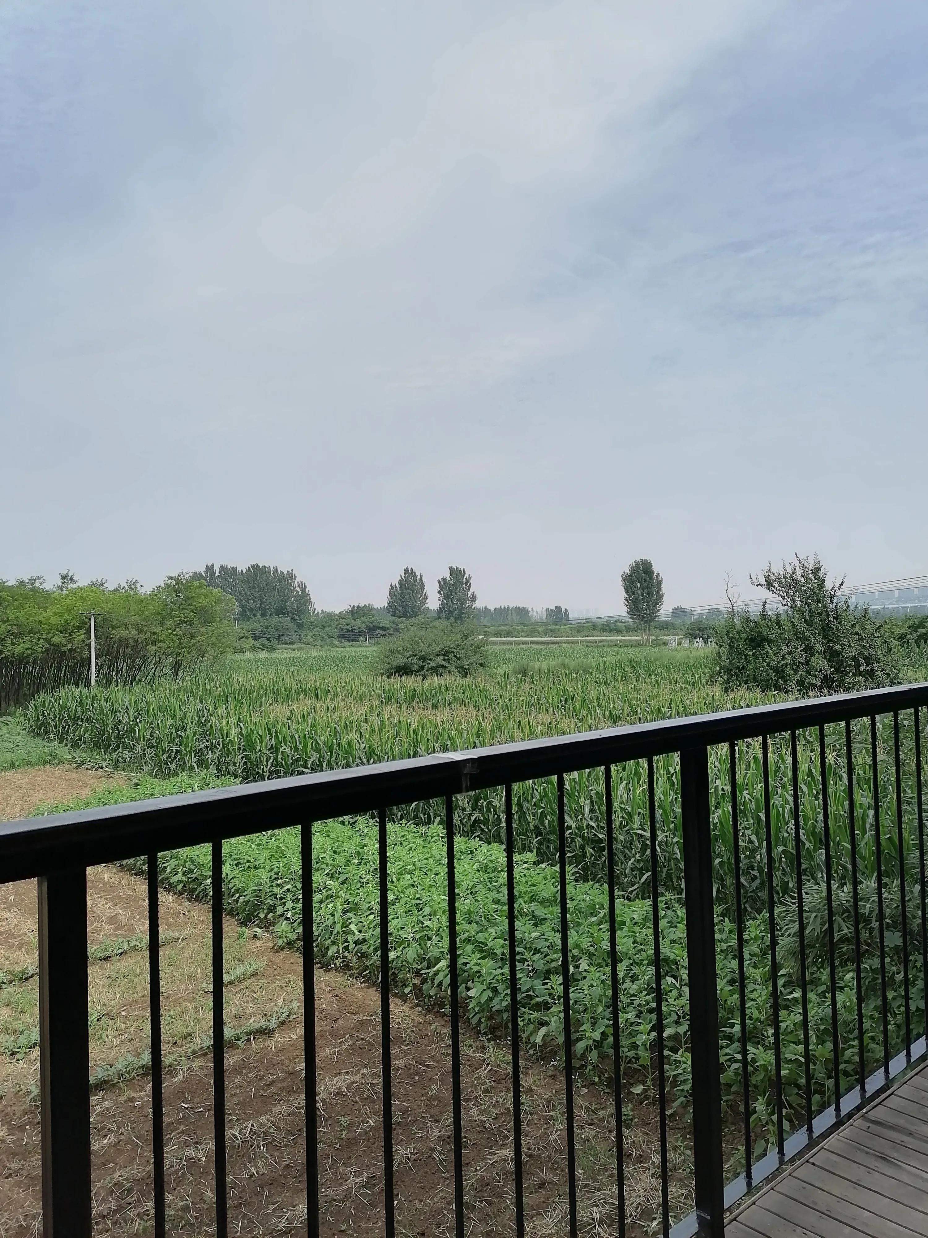 院中小鳥嘰嘰喳喳叫個不停,孔雀并不怕人 ,來回踱步,看到衣著華麗的美女走過,它會輕輕抖動展開翅膀,穿過林間小道順著樓梯爬上屋頂,眼前一下豁然開闊,一大片玉米離成熟還有一段時間。