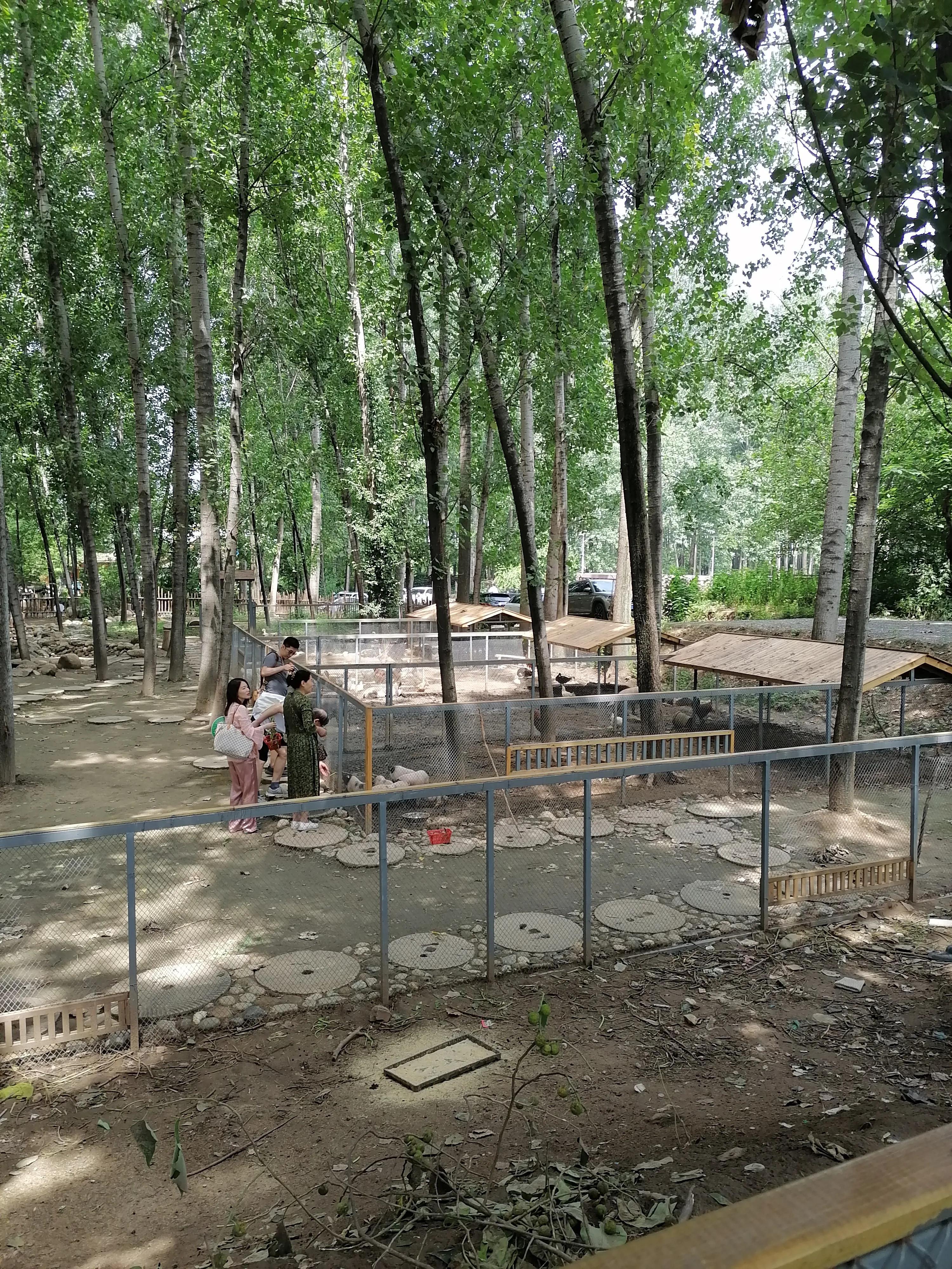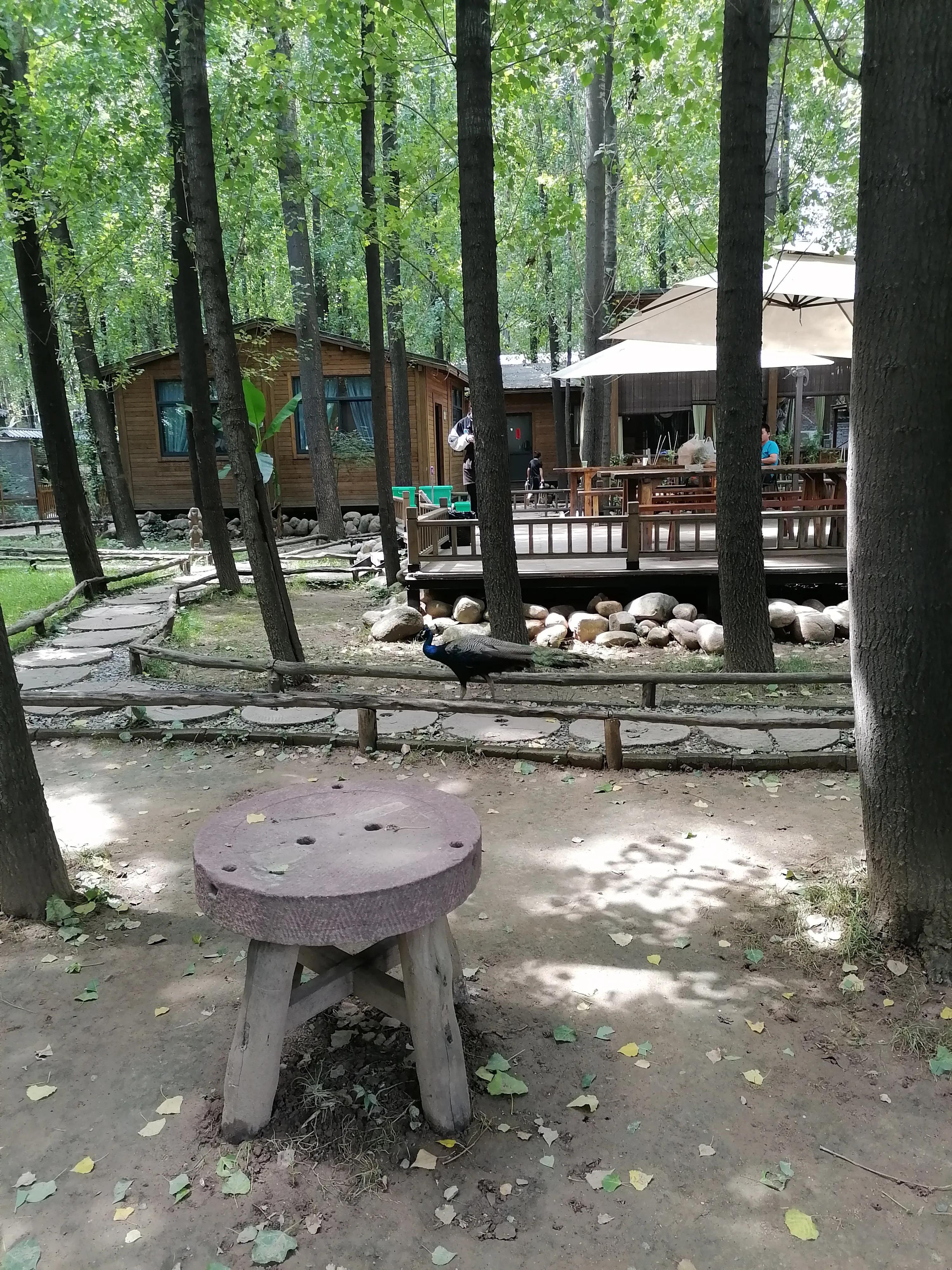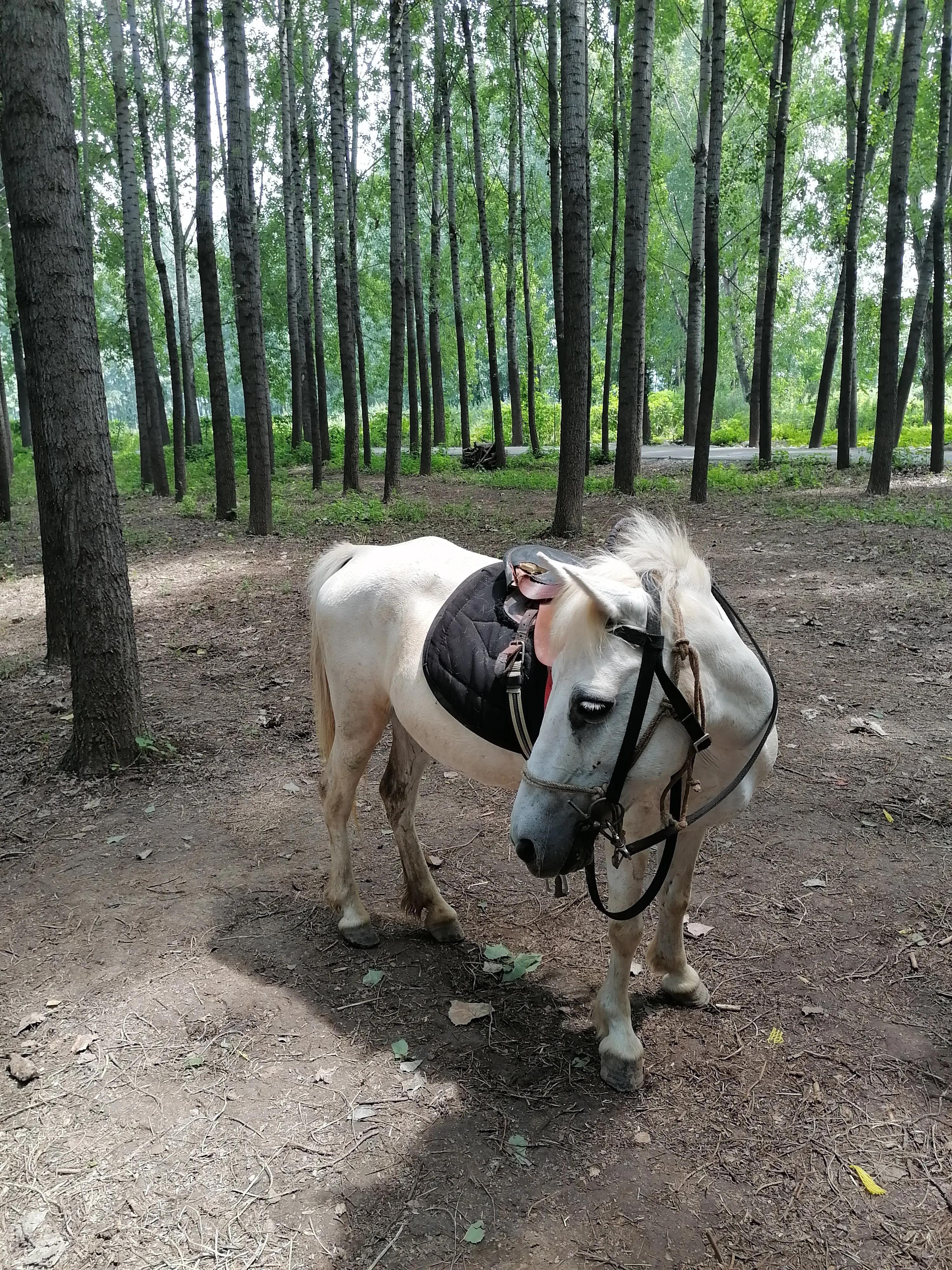 兔子們吃完了所帶的白菜和胡蘿卜,女兒將小道上的鴨子趕到了滿是浮萍的水中,看著鴨子劃出的波紋,女兒在身后吶喊著,手里還揮舞著撿來的樹枝。我們跨過一條溪流來到騎馬場,這里的馬是一種矮種馬,在教練的帶領下在林中穿梭,收費自然也不便宜 ,兩圈60四圈100,女兒膽子太小都不敢上前,我們只能去其它地方轉轉。