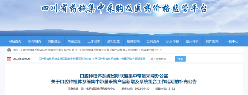 口腔耗材集采,延伸至「正畸」領域9月30日,四川省藥械集中采購平臺發(fā)布《口腔種植體系統(tǒng)省際聯(lián)盟集中帶量采購辦公室關于口腔種植體系統(tǒng)集中帶量采購產(chǎn)品新增及系統(tǒng)組合工作延期的補充公告》,再次開展基礎信息增補工作。