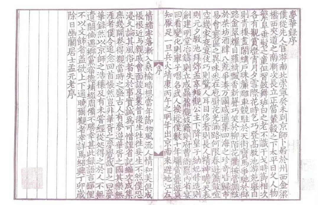 《東京夢華錄》序言,此一版本為元至正年間浙江刻本,為現(xiàn)存古老的《東京夢華錄》版本,此書原先曾是清代藏書家黃丕烈的珍藏,后來轉(zhuǎn)入陸心源皕宋樓所藏。1907年,售與日本巖崎氏的靜嘉堂文庫。元刊本《東京夢華錄》由靜嘉堂文庫影印出版,公之于世。