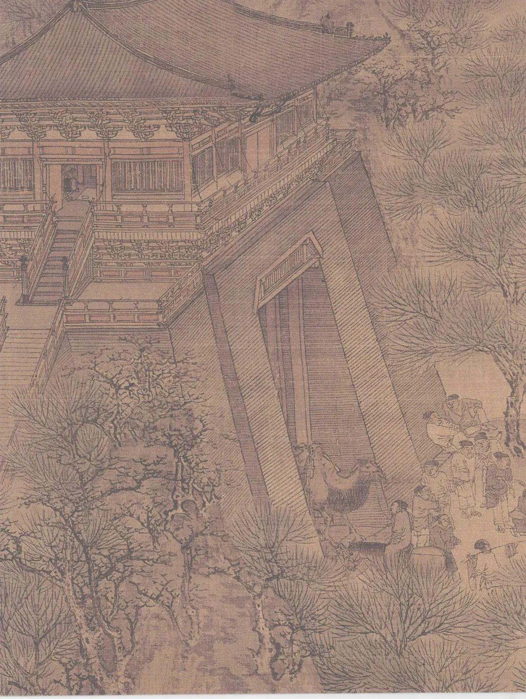 踢踏的蹄聲和趕驢的吆喝聲,從畫卷的開首傳來。抬眼看去,這真不是個分外明朗的好天氣,薄霧縈繞在老樹枝丫之間,但從樹叢中走出的這幾匹驢子和前面趕驢的行人,卻為這稍顯暗淡的天氣,加了一筆活潑的亮色——他們是要走出畫卷嗎?還是走向被畫心邊界擋住的看不見的遠(yuǎn)方?——東京城外,誠然有著更廣闊的天地。但對生活在那片更廣闊的天地的蕓蕓眾生來說,東京汴梁,才是天下的中心。
