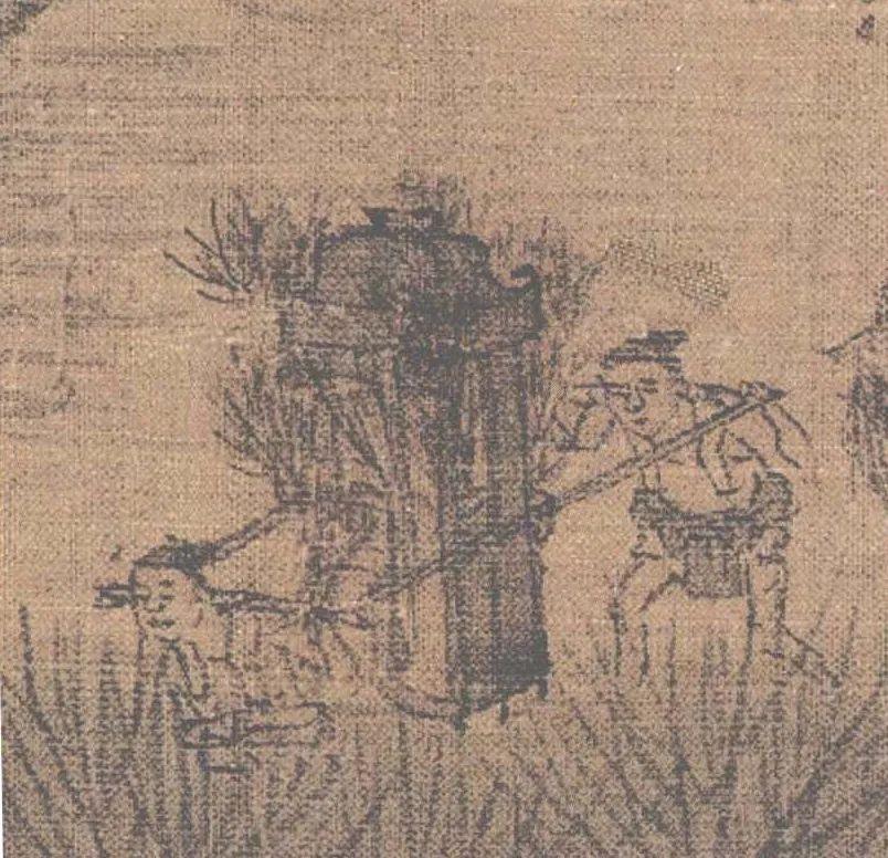 《清明上河圖》中兩名赤膊轎夫抬著插有柳枝的轎子。
