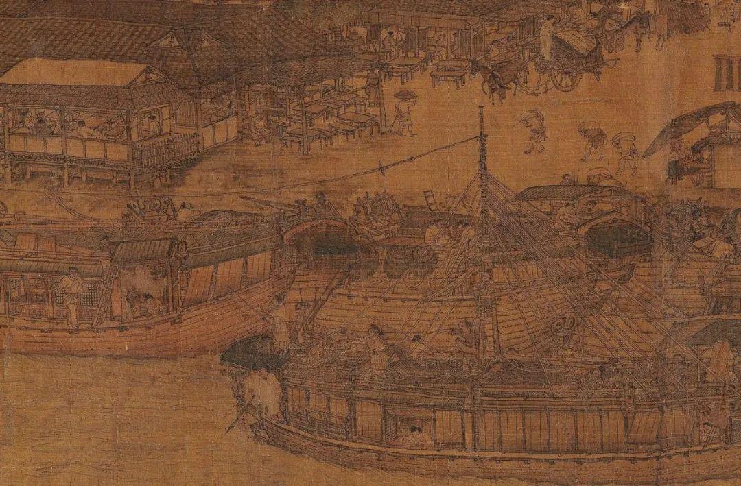 《清明上河圖》中漕糧碼頭附近店肆盛張的熱鬧場景。