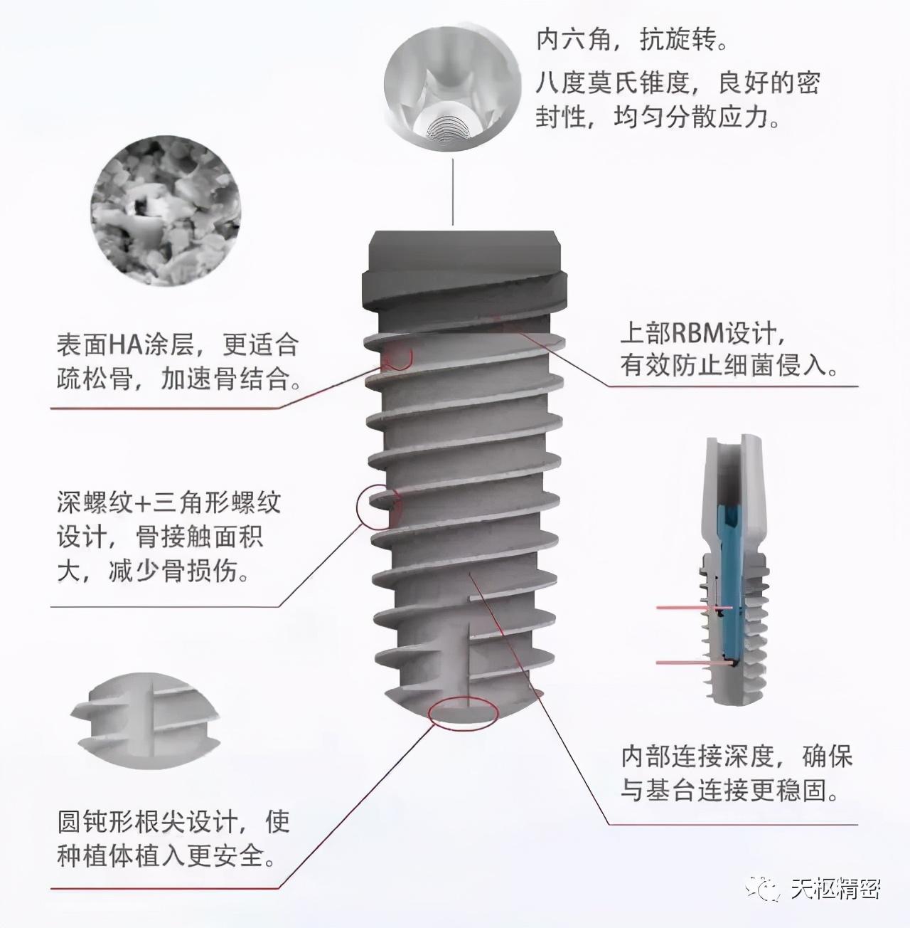 RBM和HA表面分段設(shè)計,更有減少細菌侵入,提高臨床種植。