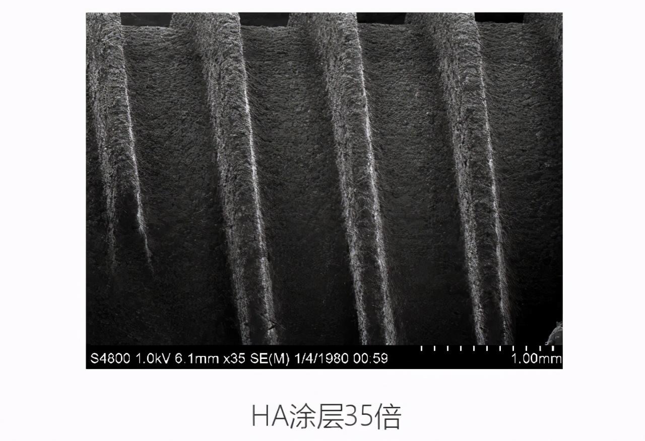 羥基磷灰石涂層(HA coating):羥基磷灰石與人體內(nèi)骨和牙齒的無機成分相似,有很高的生物相容性和生物活性,鈦基HA生物涂層材料可以誘導軟骨細胞在天然骨上沉積,發(fā)生成骨反應,使新骨在涂層的表面更好地生長。這種雙向的生長方式有利于形成天然骨組織和種植體表面涂層之間的化學鍵結(jié)合,有利于種植體終的骨整合。
