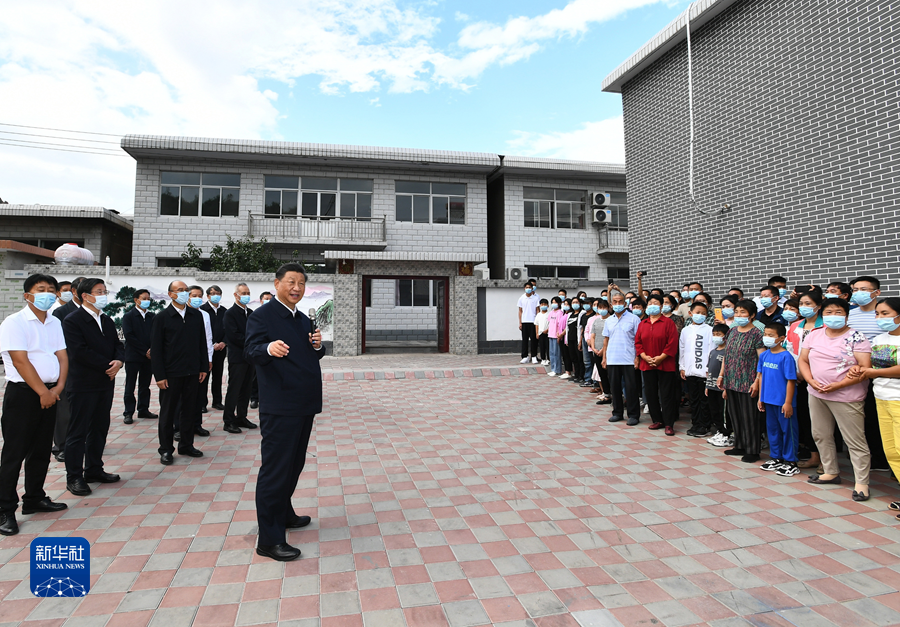 2021年9月13日至14日,在陜西省榆林市考察。圖為13日下午,在米脂縣銀州街道高西溝村臨時下車,察看糧食作物長勢,同正在田間勞作的老鄉(xiāng)拉家常。新華社記者 李學仁 攝