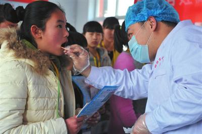 邯鄲市口腔醫(yī)院預(yù)防保健科主任岳海濱、兒童口腔科醫(yī)師李磊、醫(yī)學(xué)美容科醫(yī)師王璞及護(hù)士立刻投入到了緊張有序的檢查工作中。該校七(3)班小記者杜笑陽在岳海濱主任的認(rèn)真檢查后發(fā)現(xiàn),目前已有3顆齲齒,當(dāng)前必須補(bǔ)牙,必要時(shí)可到正規(guī)口腔醫(yī)院做烤瓷冠,否則會(huì)越來越嚴(yán)重。在接下來的檢查中,李磊主任也發(fā)現(xiàn)了不少問題,八(1)班小記者張自然牙齒不齊,李磊主任告訴她要及時(shí)矯正,否則就錯(cuò)過了佳矯正期,回去后應(yīng)及時(shí)告訴家長,到正規(guī)口腔醫(yī)院做矯正調(diào)節(jié)。有的小記者有牙洞,需要及時(shí)補(bǔ)牙,還有的小記者有蟲牙,需要做窩溝封閉……為小記者檢查完畢后,專家們現(xiàn)場還為該校其他學(xué)生進(jìn)行了口腔檢查。學(xué)生檢查結(jié)束后,看看時(shí)間還早,邯鄲市口腔醫(yī)院紀(jì)委書記濮磊臨時(shí)決定現(xiàn)場為全校老師進(jìn)行口腔健康檢查。老師們長期工作在教學(xué)一線,口腔健康狀況也不容樂觀,專家們分別針對(duì)具體情況現(xiàn)場拿出了調(diào)節(jié)意見。