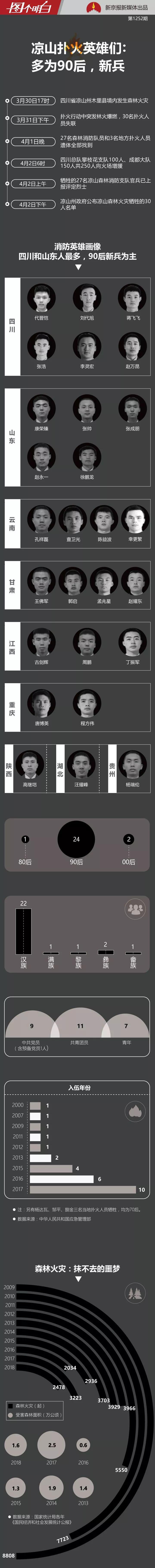 撲火犧牲英雄,來自五湖四海。除了9人來自事發(fā)地四川省,還有5人來自山東省,4人來自云南省,4人來自甘肅省……