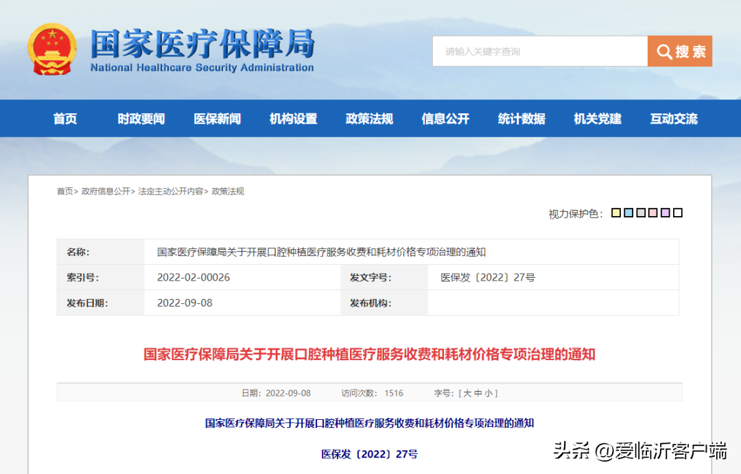 醫(yī)療保障局關(guān)于開展口腔種植醫(yī)療服務(wù)收費(fèi)和耗材價(jià)格專項(xiàng)治理的通知
