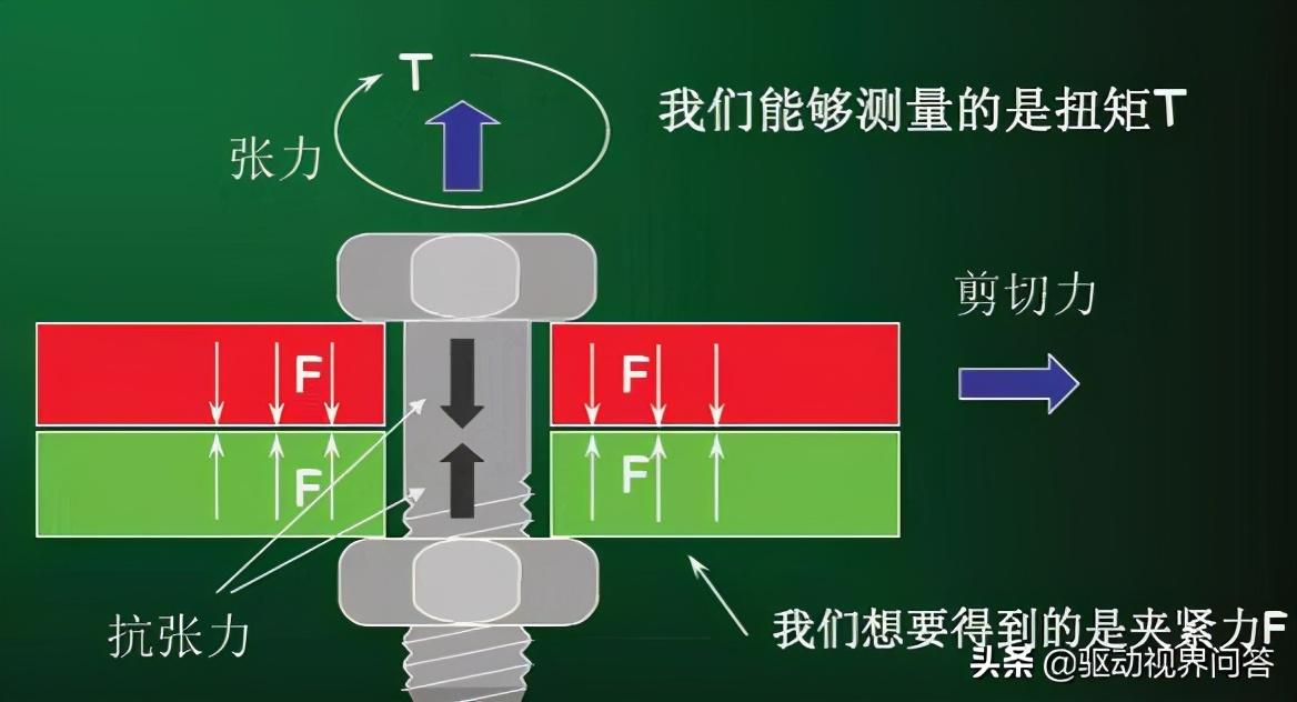 差速器螺栓的擰緊是為了用螺栓的夾緊力將主減齒輪壓緊在差速器殼體上,使其可以克服主減齒輪旋轉(zhuǎn)的靜摩擦力和工作載荷下的軸向力。在滿足使用要求的前提下,還要防止施加的扭矩超過螺栓的抗拉強度極限而造成螺栓斷裂和內(nèi)螺紋脫扣的失。需要注意的是,施加的扭矩T與實際起作用的夾緊力F之間的關(guān)系并不等同。