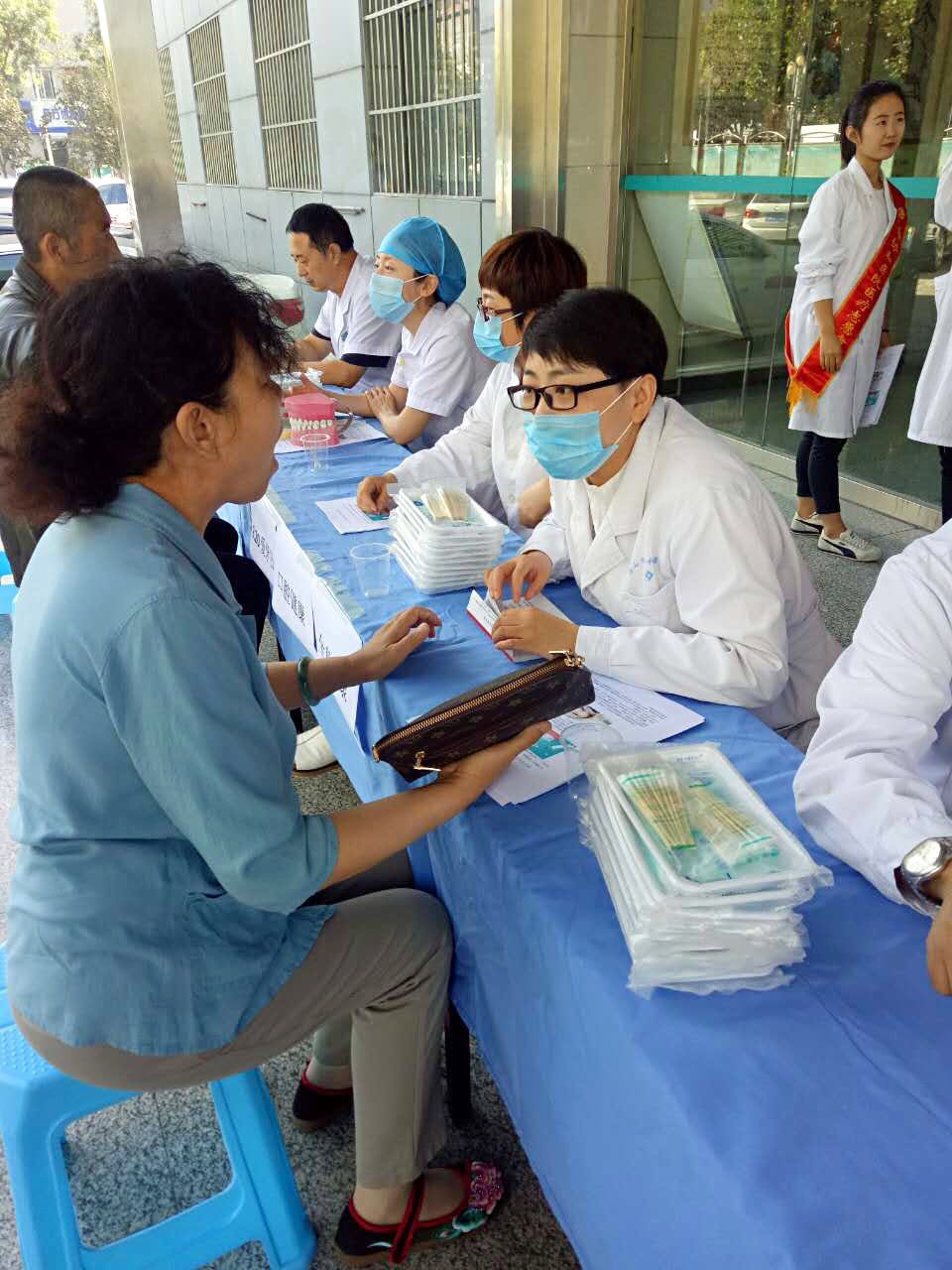 上午8點,該院參加義診宣傳的醫(yī)生們便早早來到在口腔醫(yī)院門診樓前,擺放桌椅、檢查一次性器具情況和安放宣傳材料,為口腔健康咨詢、義診活動做準備。義診活動中,口腔科專業(yè)醫(yī)師們認真為每位群眾進行免費的口腔健康檢查,告知患有口腔疾病的患者應如何進行調節(jié),以及在日常生活中應該怎樣做好口腔保健工作。