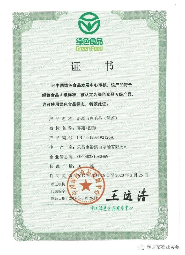 產(chǎn)品證書:地理標(biāo)志保護(hù)產(chǎn)品標(biāo)志、沿溪山白毛茶(綠茶)綠色食品證書