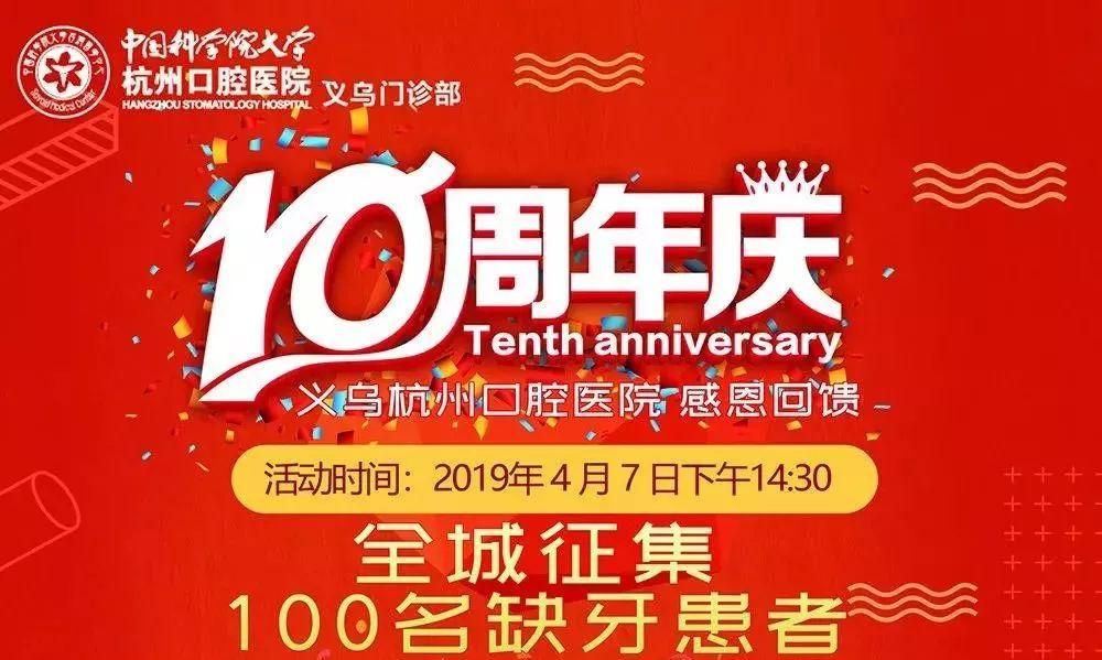 4月7日下午2點(diǎn)30分,為慶祝義烏杭州口腔醫(yī)院建院10周年,義烏商報(bào)新媒體中心與義烏杭州口腔醫(yī)院將舉辦一場(chǎng)大型種植牙直播活動(dòng),讓你親眼見(jiàn)證種植牙的科學(xué)與神奇, 零距離直擊種牙全過(guò)程,義烏人千萬(wàn)別錯(cuò)過(guò)了,凡到醫(yī)院觀摩直播活動(dòng)的缺牙者還有好東西領(lǐng)。限額100名,還不趕快報(bào)名!