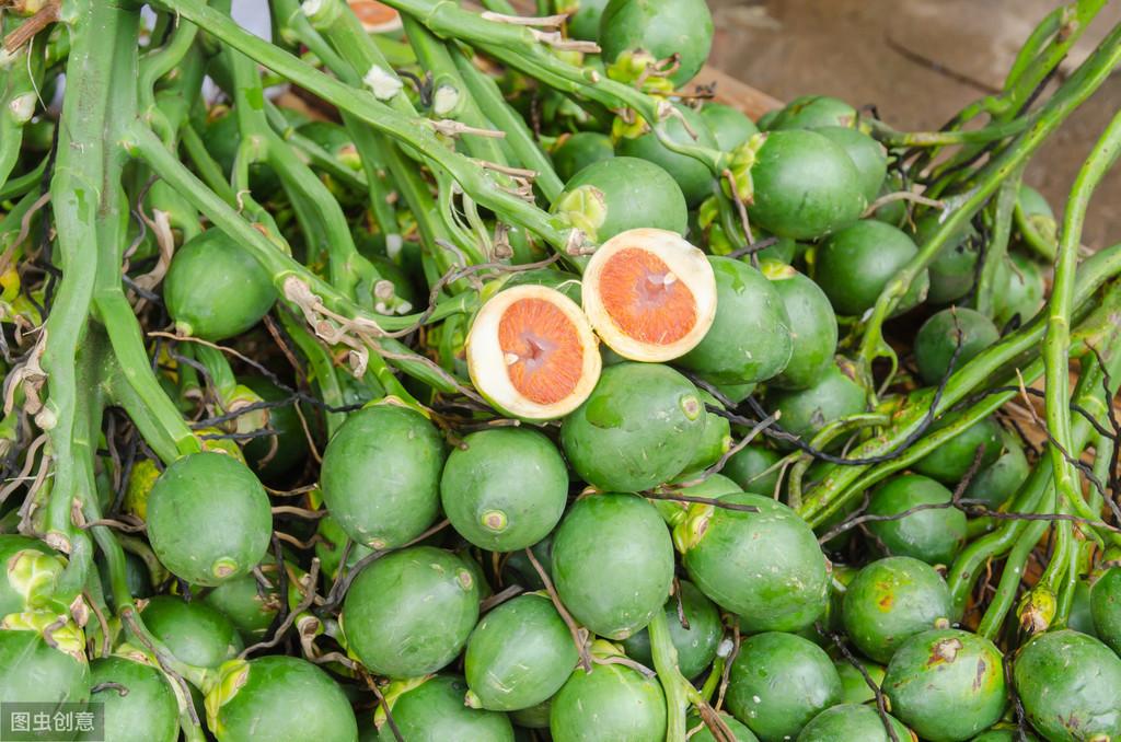 2、檳榔的果實(shí)長(zhǎng)圓形或卵球形,長(zhǎng)3-5厘米,橙黃色,中果皮厚,纖維質(zhì)。常見(jiàn)散生于低山谷底、坡麓、嶺腳和平原溪邊熱帶季雨林次生林間,也有成片生長(zhǎng)于富含腐殖質(zhì)的溝谷,疏林、山坎內(nèi)及微酸性至中性的沙質(zhì)壤土荒山曠野。種植適氣溫在10-36℃,低溫度不低于10℃、高溫度不高于40℃,海拔0-1000米,年降雨量1700-2000毫米的地區(qū)均能生長(zhǎng)良好。