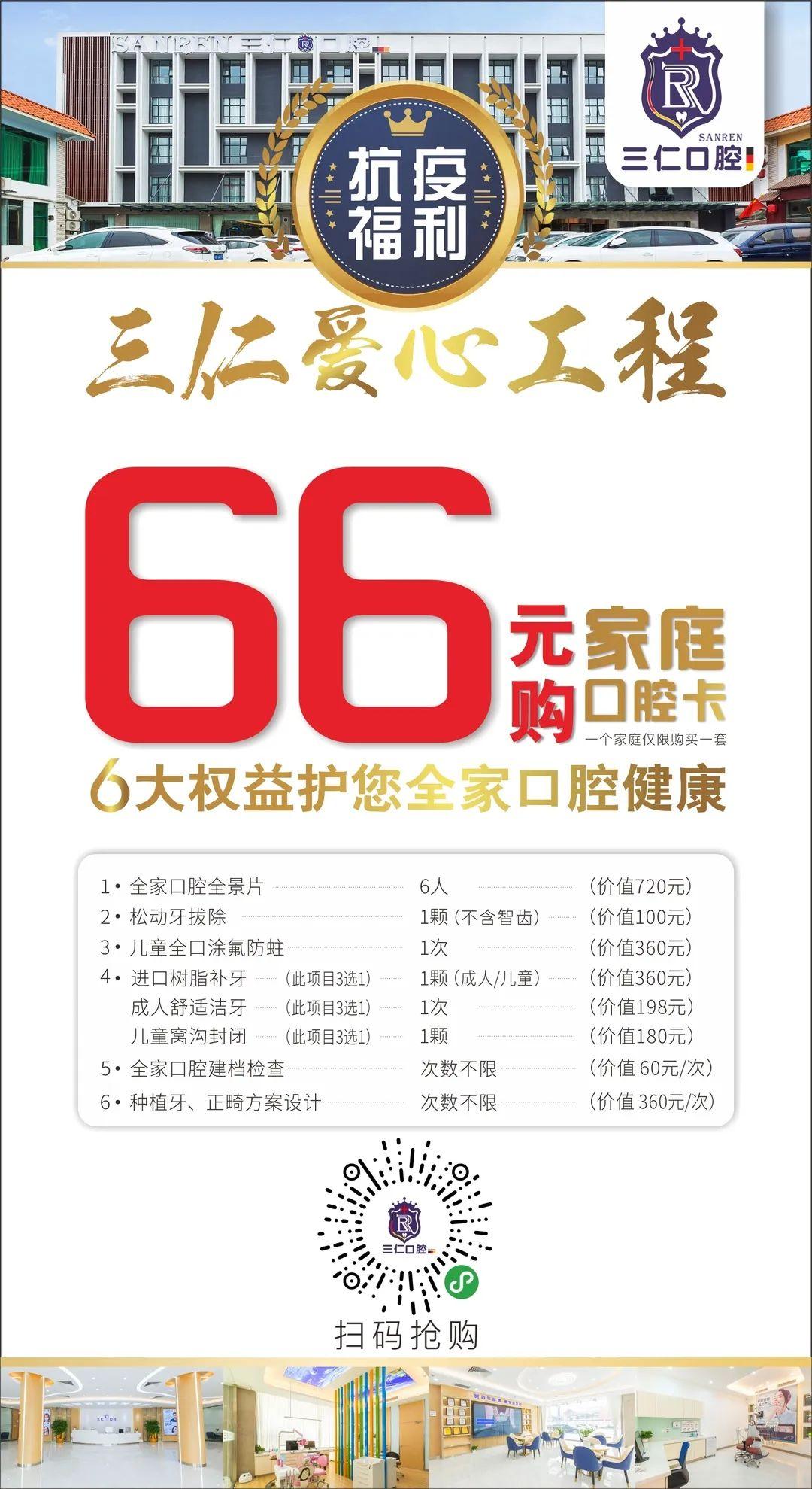 除了種植牙,許多市民需要補(bǔ)牙、洗牙、拔牙,以及牙齒矯正。三仁口腔限時(shí)推出66元的看牙福利,絕無套路,看牙只需要66元。