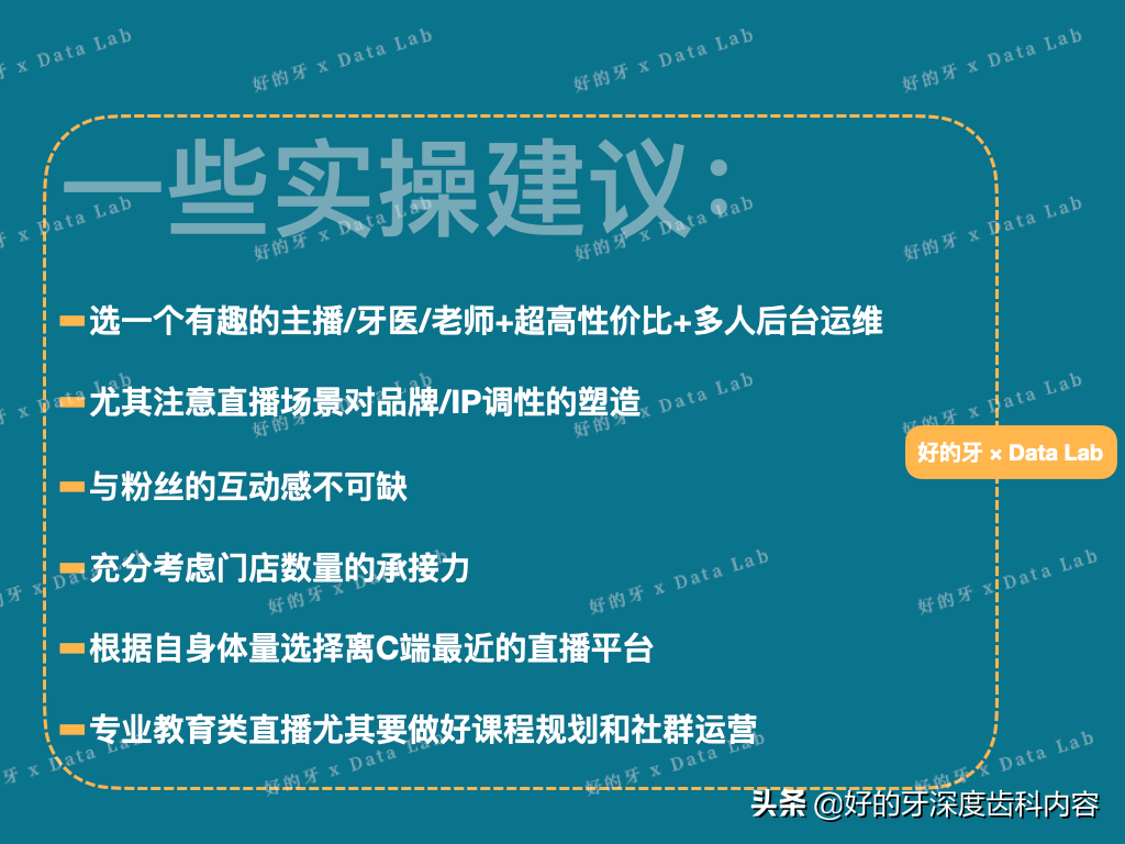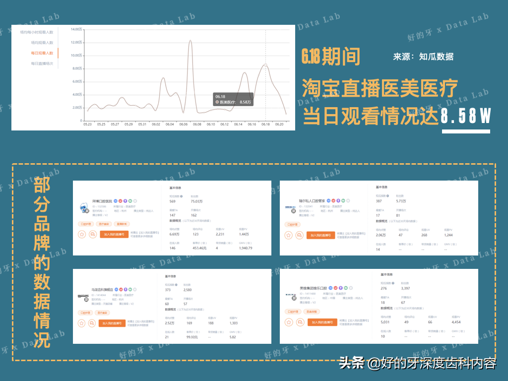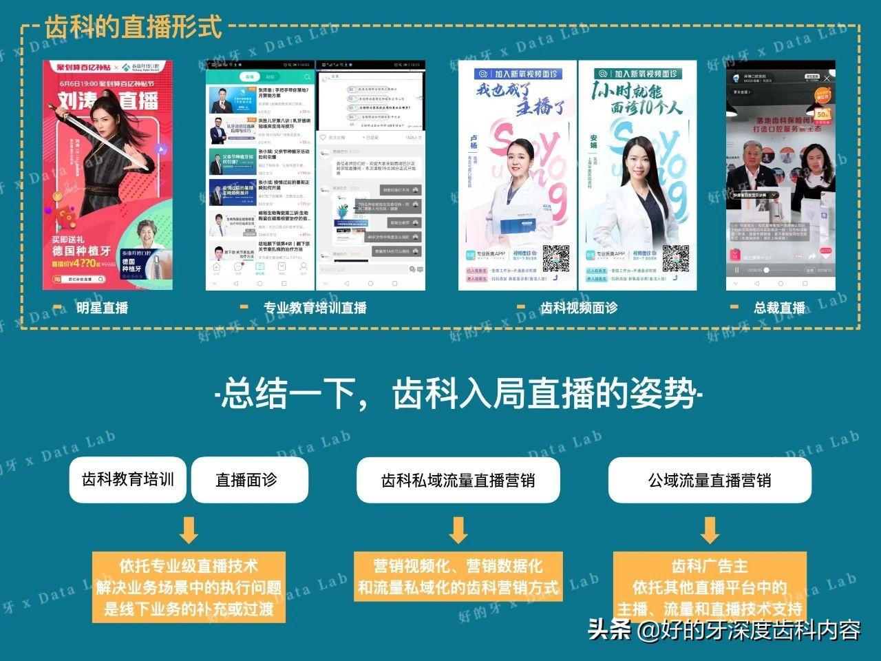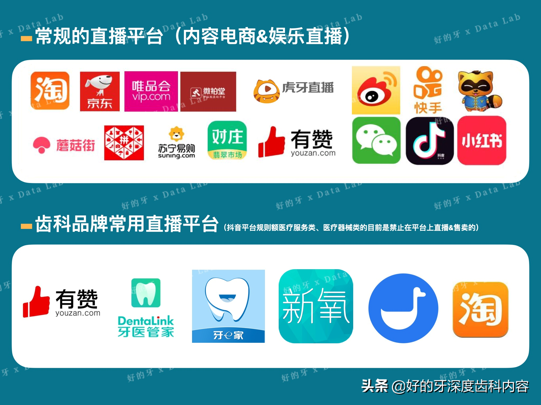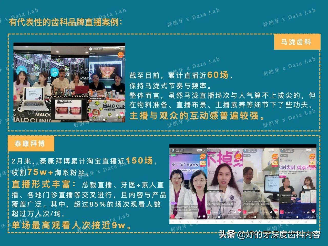 毫不夸張的說,在線面診、牙醫(yī)直播科普、直播上網(wǎng)課幾乎成為眾多齒科品牌的標配,與此同時,不少頭部品牌開始試水直播帶貨,以各自的天貓店鋪為陣地,借助淘寶直播帶貨。6月里,泰康拜博聯(lián)手劉濤帶貨種植牙,首度將“齒科品牌+明星直播+直播平臺”三者鏈為一體,似乎也給行業(yè)打開了新的銷售路徑。
