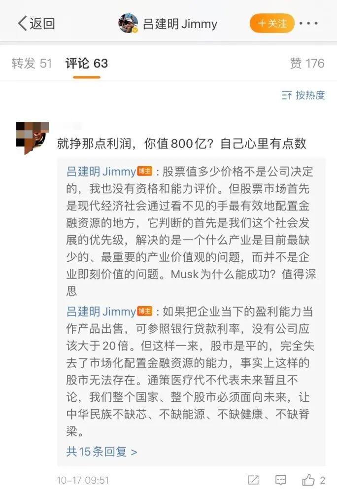 在公司股價(jià)跌跌不休之時(shí),通策醫(yī)療董事長(zhǎng)呂建明于2021年10月15日發(fā)博稱:“我們自豪的成績(jī)單!在疫情反復(fù)、政策不確定、市場(chǎng)敏感的復(fù)雜形勢(shì)下,ROE、現(xiàn)金流等各項(xiàng)指標(biāo)都無法挑剔。一切都符合我們的預(yù)期……通策將在穩(wěn)健、卓越的道路上走得更遠(yuǎn)?!?/span>