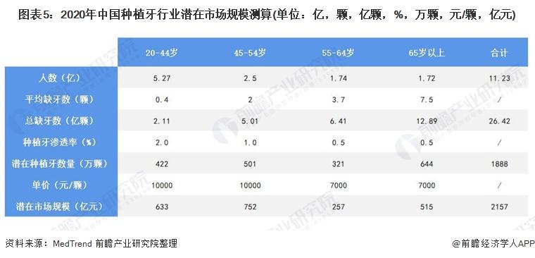 根據(jù)《2020中國口腔醫(yī)療行業(yè)報告》數(shù)據(jù)測算,目前我國人口總?cè)毖罃?shù)達(dá)到26.42億顆,潛在種植牙數(shù)量1888萬顆,潛在種植牙市場規(guī)模超過2000億元。
