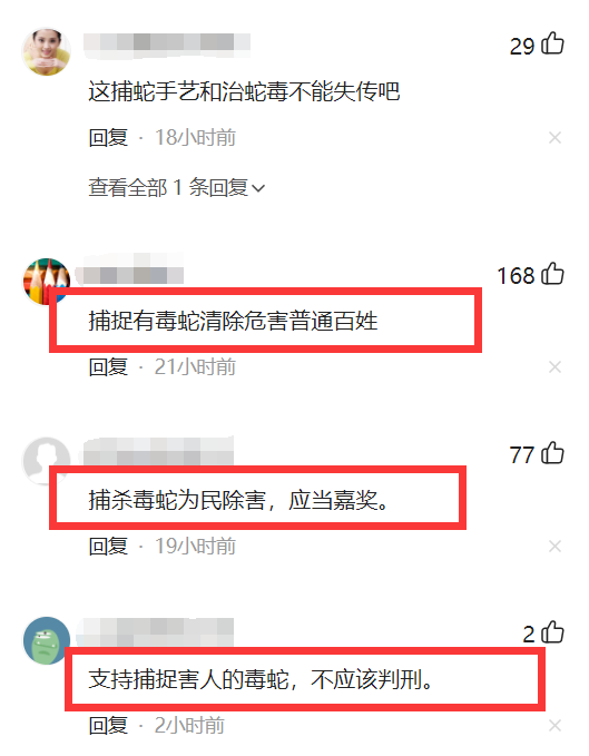 但是,前面我們也說了,在這件事情出現(xiàn)之后,竟然有人支持他做得對(duì),那到底對(duì)不對(duì),不能讓毒蛇存在?下面我們就說下,捕毒蛇對(duì)不對(duì)。