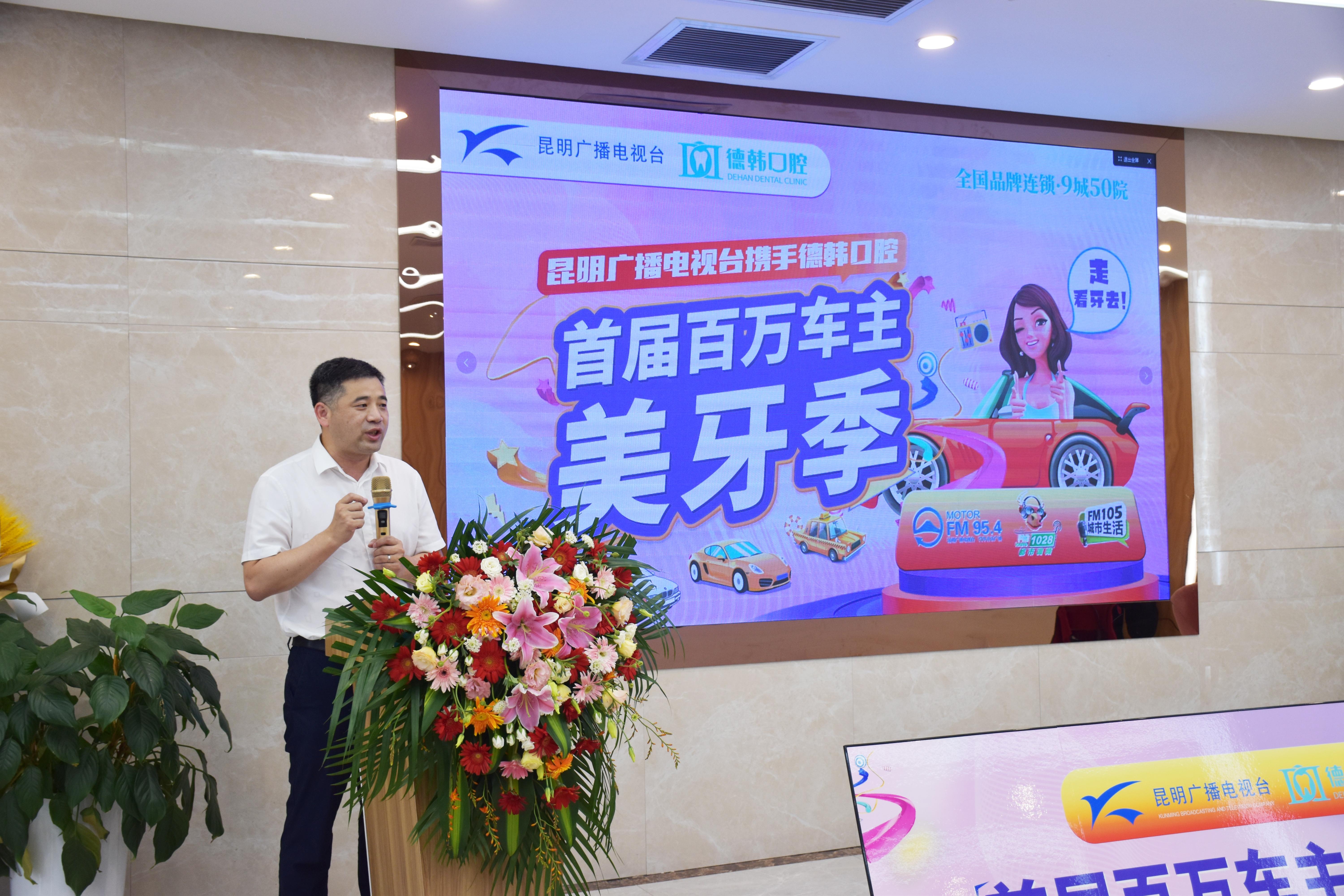 7月17日,昆明廣播電視臺(tái)“首屆百萬車主美牙季”啟動(dòng)儀式暨新聞發(fā)布會(huì)在位于青年路金鷹購物商場的4樓德韓口腔舉行。昆明廣播電視臺(tái)臺(tái)務(wù)委員、全媒體廣播中心主任杜小兵表示,口腔健康是全身健康的重要組成部分,是反映一個(gè)和地區(qū)居民身心健康,文明水平的重要標(biāo)志,作為媒體,有責(zé)任對(duì)群眾的健康作出積極的引導(dǎo),也有能力整合資源,為廣大聽眾提供有品質(zhì)的醫(yī)療資源。