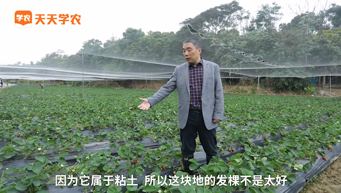 大家現(xiàn)在看到的這塊地是粘土,草莓的發(fā)棵不太好,它的長勢還沒有完全起來,但是已經(jīng)有很多果結(jié)住了,包括花都有的,看了以后不會覺得是營養(yǎng)生長過旺。不過采收的時間比法蘭地晚。產(chǎn)量方面,實際上這個品種它跟紅顏、章姬是一樣的,對白粉病抗性比法蘭帝差一些,但是要比紅顏、章姬好一些。管理難度要比紅顏、章姬小一點。但整體上不如法蘭地品種,所以現(xiàn)在南方地區(qū)把以前豐香品種淘汰了,基本上如果不選擇用紅顏的話,就會選擇用妙香7號來做雜交管理。原因在于它的產(chǎn)量各方面還是比紅顏高。在種植技術(shù)上面,特別是紅中柱根腐病方面會比紅顏和章姬難度要小一些,所以很多種植戶愿意選擇用妙香7號品種來進行栽培。產(chǎn)量也不錯,口感稍微差一點,但價格很好,現(xiàn)在目前價格是45塊一斤。
