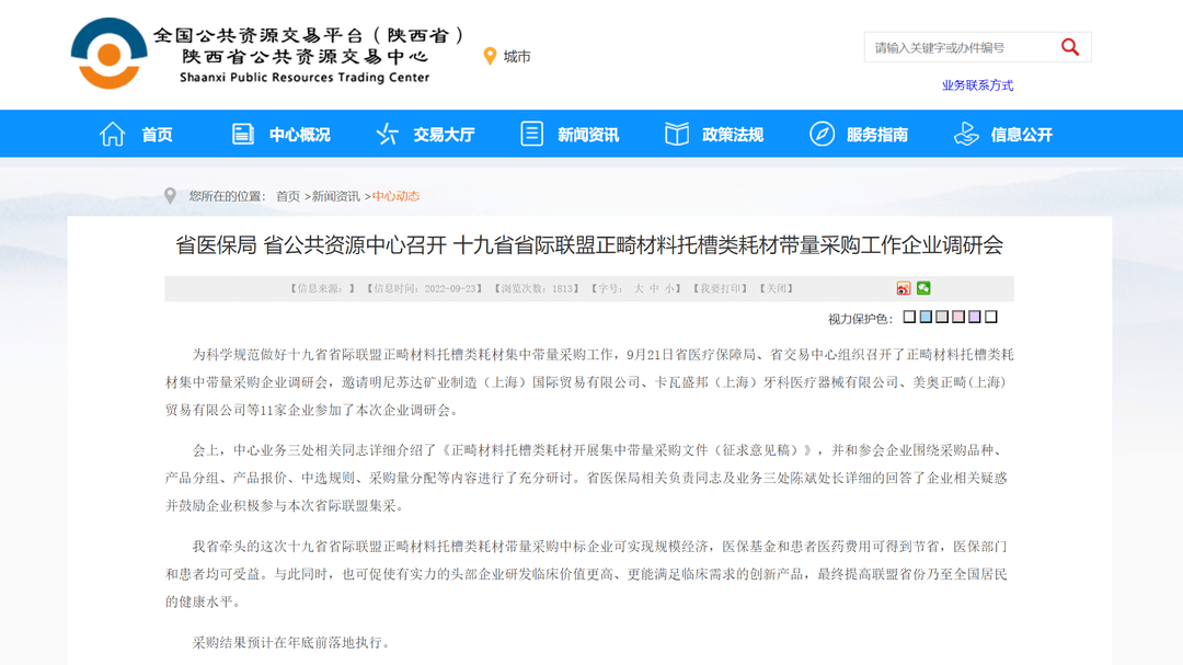 9月30日,四川省藥械集中采購平臺發(fā)布《口腔種植體系統(tǒng)省際聯(lián)盟集中帶量采購辦公室關(guān)于口腔種植體系統(tǒng)集中帶量采購產(chǎn)品新增及系統(tǒng)組合工作延期的補充公告》,再次開展基礎(chǔ)信息增補工作。據(jù)了解,此次開展企業(yè)調(diào)研會是為十九省省際聯(lián)盟正畸材料托槽類耗材集中帶量采購做準備。相關(guān)負責(zé)人在會議上詳細介紹了《正畸材料托槽類耗材開展集中帶量采購文件(征求意見稿)》,并和參會企業(yè)圍繞采購品種、產(chǎn)品分組、產(chǎn)品報價、中選規(guī)則、采購量分配等內(nèi)容進行研討,鼓勵企業(yè)積極參與本次省際聯(lián)盟集采。