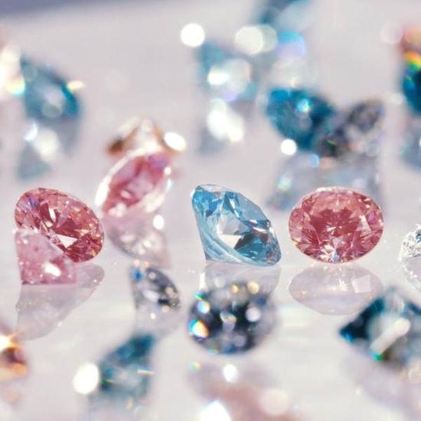 隨著科技發(fā)展,實驗室已經(jīng)可以輕易制造出色彩明艷、品質(zhì)的彩鉆。圖中為戴比爾斯旗下人造鉆石時尚珠寶品牌Lightbox Jewelry生產(chǎn)的彩色人造鉆石。