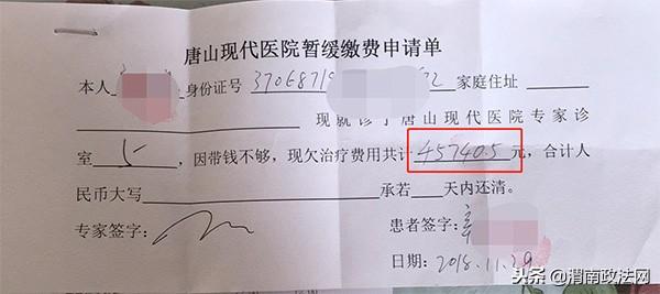 做完手術后,辛余才得知總費用達51930元。由于沒帶那么多錢,交了一部分錢后,醫(yī)院讓他打了一張45740.5元的“暫緩繳費申請單”。