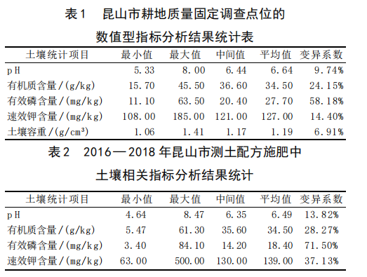 耕地質(zhì)量固定調(diào)查點(diǎn)位的數(shù)值型指標(biāo)分析結(jié)果及變化情況