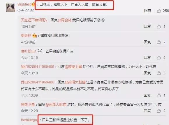在湖南對檳榔廣告出手后,有網(wǎng)友在評論中提到:“口味王,和成天下,廣告天天播,冠名節(jié)目”。據(jù)了解,“和成天下檳榔”是口味王的主導產(chǎn)品。
