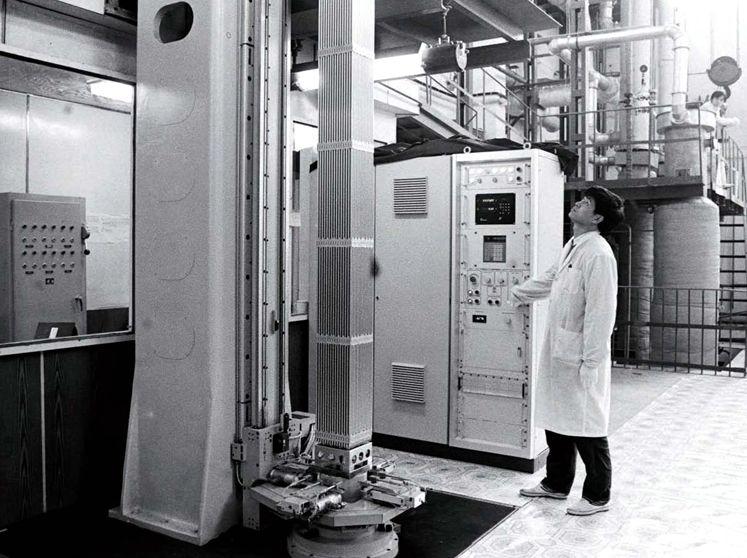 1987 年,宜賓核燃料元件廠自行設計和制造的秦山核電站30 萬千瓦核燃料組件和相關組件通過驗收。圖為技術(shù)人員在檢查核燃料組件的質(zhì)量(新華社 供圖)