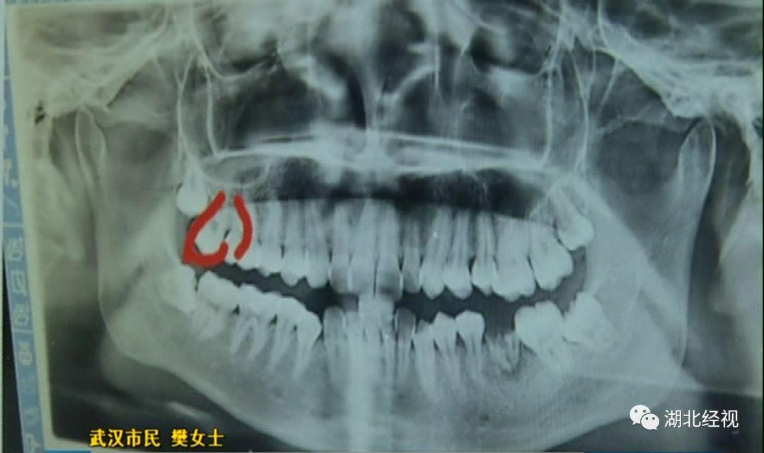 武漢第一口腔醫(yī)院的工作人員說,醫(yī)院只能賠償八千到一萬,還要通過調(diào)整她的智齒來恢復(fù)正常牙齒的功能。