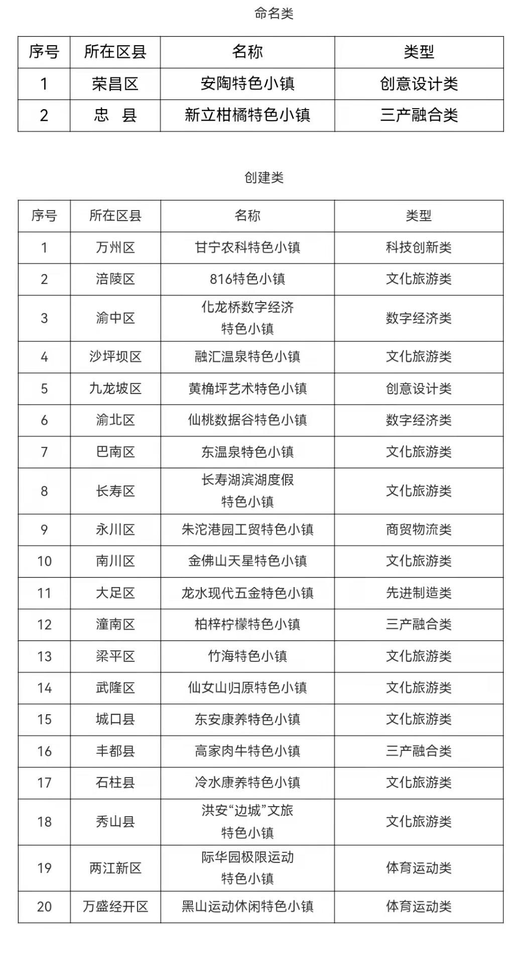 特色小鎮(zhèn)清單。重慶市發(fā)展和改革委 供圖