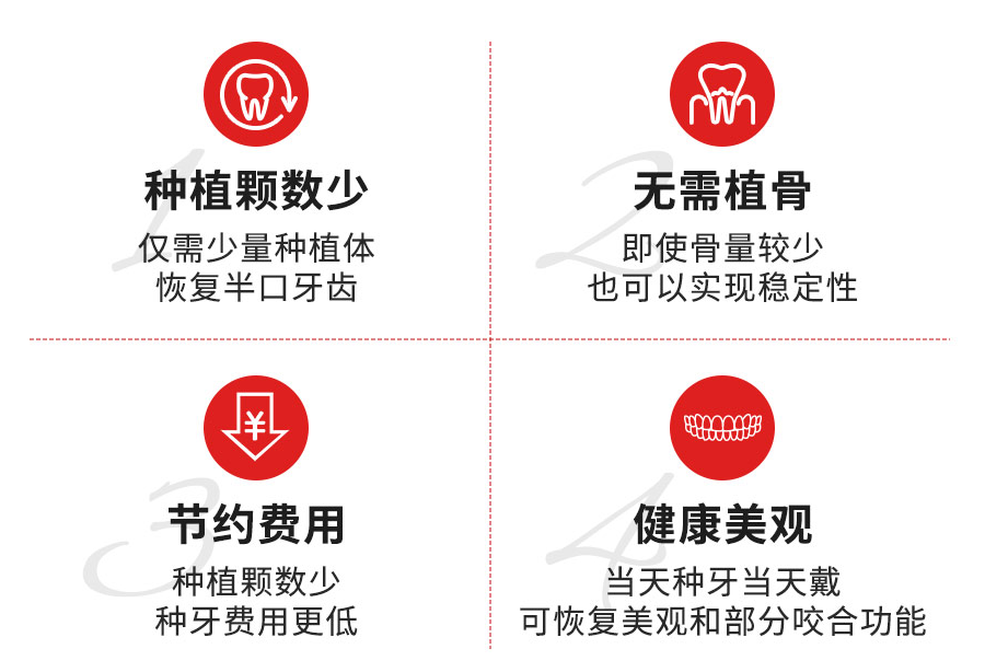 口腔種植牙是在牙齒缺失的情況下,僅利用4—6顆種植體,種出整排牙。所有種植修復(fù)步驟當天完成,實現(xiàn)“即拔、即種、即用”,種植當天恢復(fù)咀嚼功能,恢復(fù)飲食。