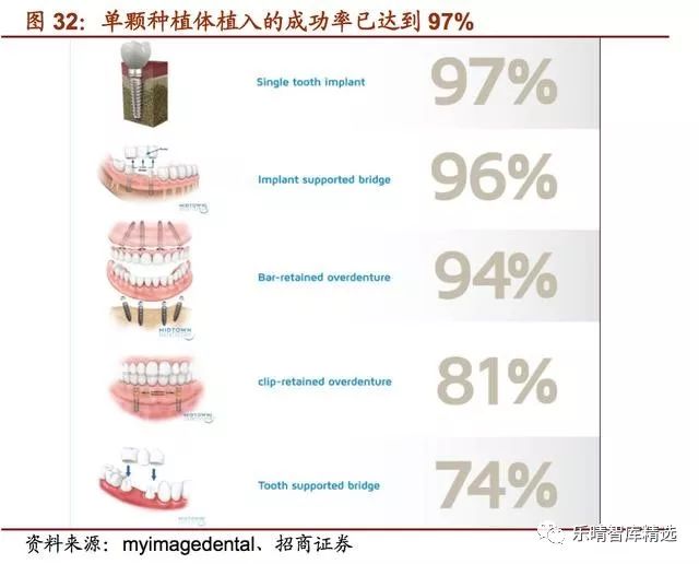 在僅植入一顆種植體的單顆植入情況下,種植牙手術(shù)的可達(dá)到97%,在所有口腔修復(fù)術(shù)中位居第一。