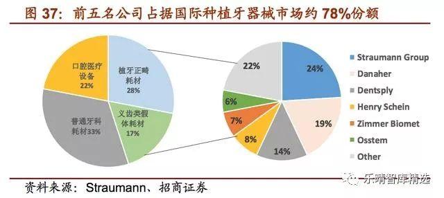 主要種植體企業(yè)包括瑞士Straumann,美國DENTSPLY,美國ZimmerBiomet,美國Danaher(收購瑞典Nobel種植牙),西班牙AVINENTImplantSystem,美國HenrySchein,韓國Osstem,韓國DIO,德國Merz,美國BICON,日本ShofuDental,瑞士ThommenMecial和南非SouthernImplant等。