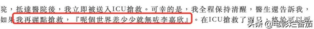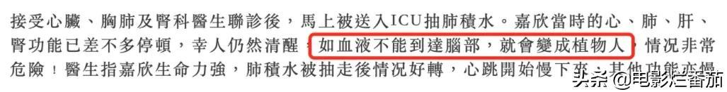 好在當時李嘉欣的意識還比較清醒,否認血液無法到達腦部,她就有可能成為植物人。