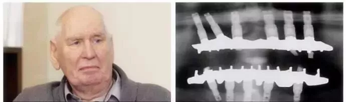 60年代,種植牙的發(fā)明者布倫馬克教授使用11個(gè)種植體來(lái)幫助斯蒂約翰遜完成上頜和下頜的重建。 斯蒂約翰遜成為世界上第二個(gè)種牙的患者。