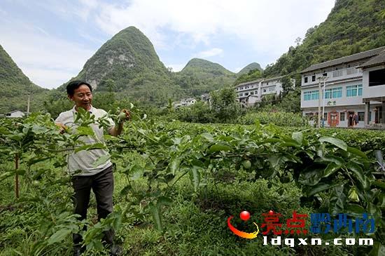興義市則戎鄉(xiāng)冷洞村村支書(shū)朱昌國(guó)介紹村里種植的百香果。