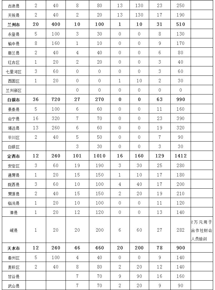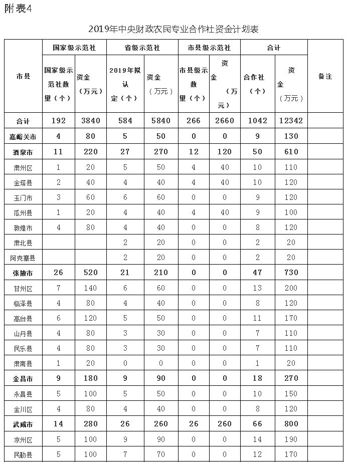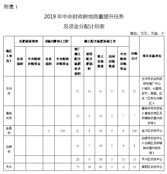 根據(jù)《財(cái)政部關(guān)于提前下達(dá)2019年部分農(nóng)業(yè)轉(zhuǎn)移支付資金預(yù)算的通知》(財(cái)農(nóng)〔2018〕125號(hào))和《甘肅省財(cái)政廳關(guān)于做好省級(jí)部門(mén)2019-2021年財(cái)政規(guī)劃和2019年部門(mén)預(yù)算編制工作的通知》(甘財(cái)預(yù)〔2018〕65號(hào))要求,經(jīng)研究,現(xiàn)將2019年中央財(cái)政農(nóng)業(yè)生產(chǎn)發(fā)展資金分配計(jì)劃下達(dá)你們,并將有關(guān)事項(xiàng)通知如下: