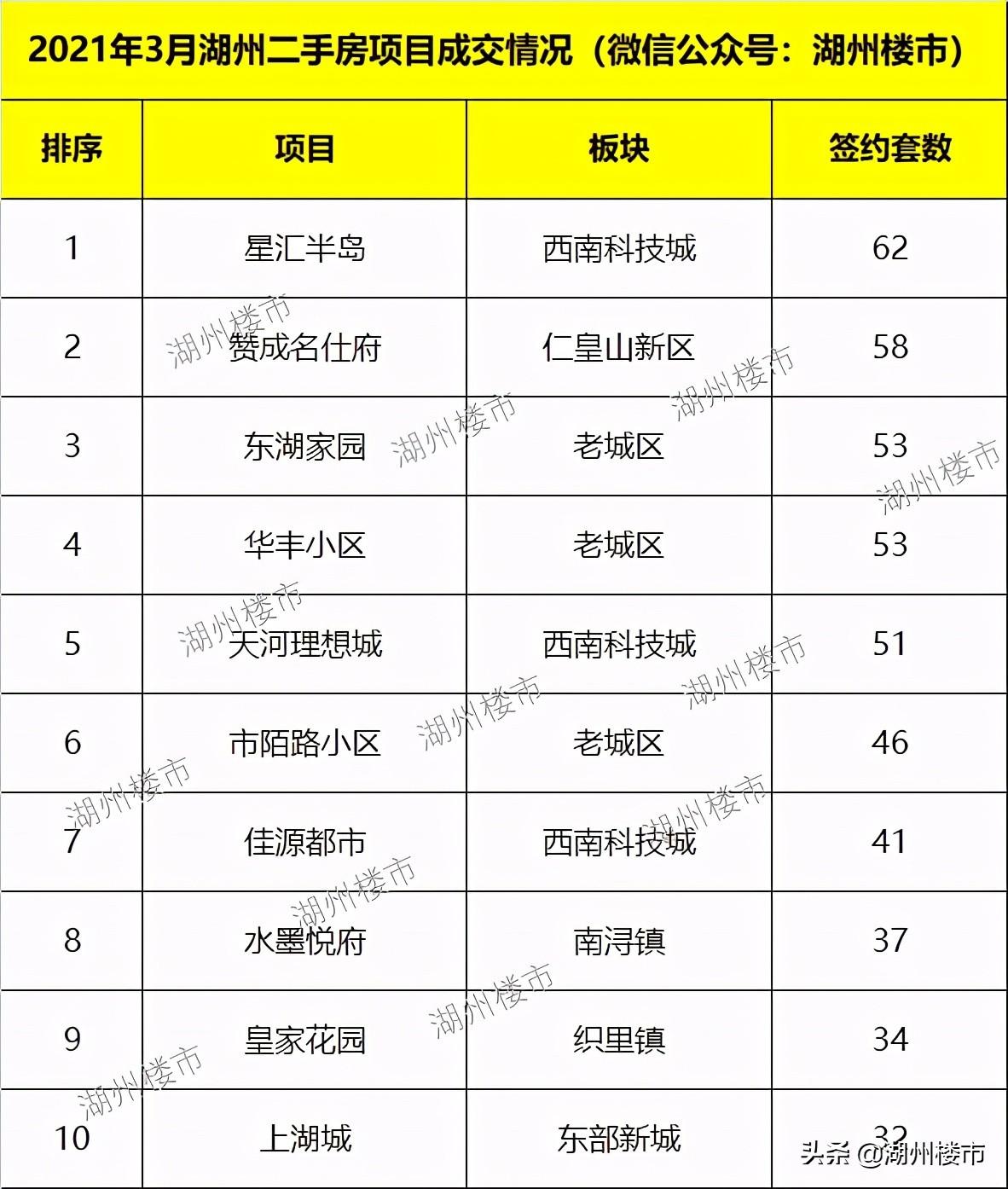 3月期間,二手住宅成交套數(shù)多的小區(qū)分別為星匯半島、贊成名仕府、東湖家園和華豐小區(qū)。