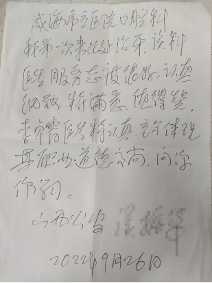 侯先生對(duì)比起當(dāng)年在外地看牙的經(jīng)歷,不禁感嘆:“這么短的時(shí)間就解決了我這么多的口腔問(wèn)題,威海市立醫(yī)院口腔科服務(wù)如此便捷高,以后看牙再也不用東奔西跑了”。