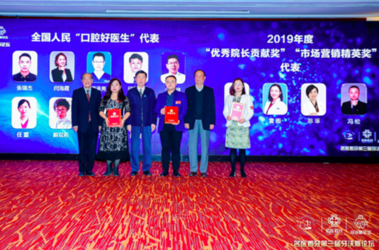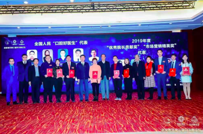 (2019年度市場營銷精英獎,院長貢獻(xiàn)獎(排名不分先后):院長:雷雨(合眾齒科)、陳琢( 沈陽和平帝齒口腔門診部)、營銷精英獎得主:馮松(全博口腔))