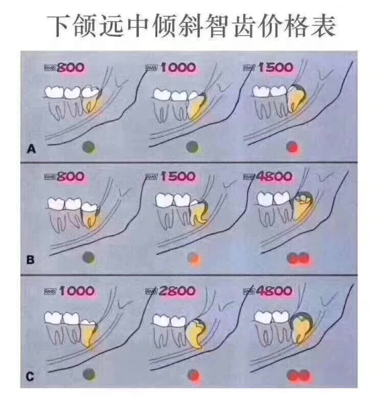 下面這個(gè)圖可以簡(jiǎn)單對(duì)價(jià)格做一個(gè)衡量,但不同地方、不同拔牙方法,收費(fèi)差異不同,僅供參考。