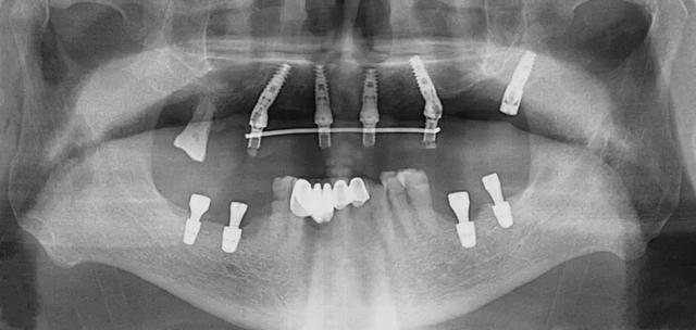 下午2點(diǎn)開始手術(shù),歷經(jīng)90分鐘,一共植入9顆種植體,全程。下午7點(diǎn)用了10多分鐘就完成了假牙安裝,假牙與牙床渾然一體,像是重新長出的牙齒一般。