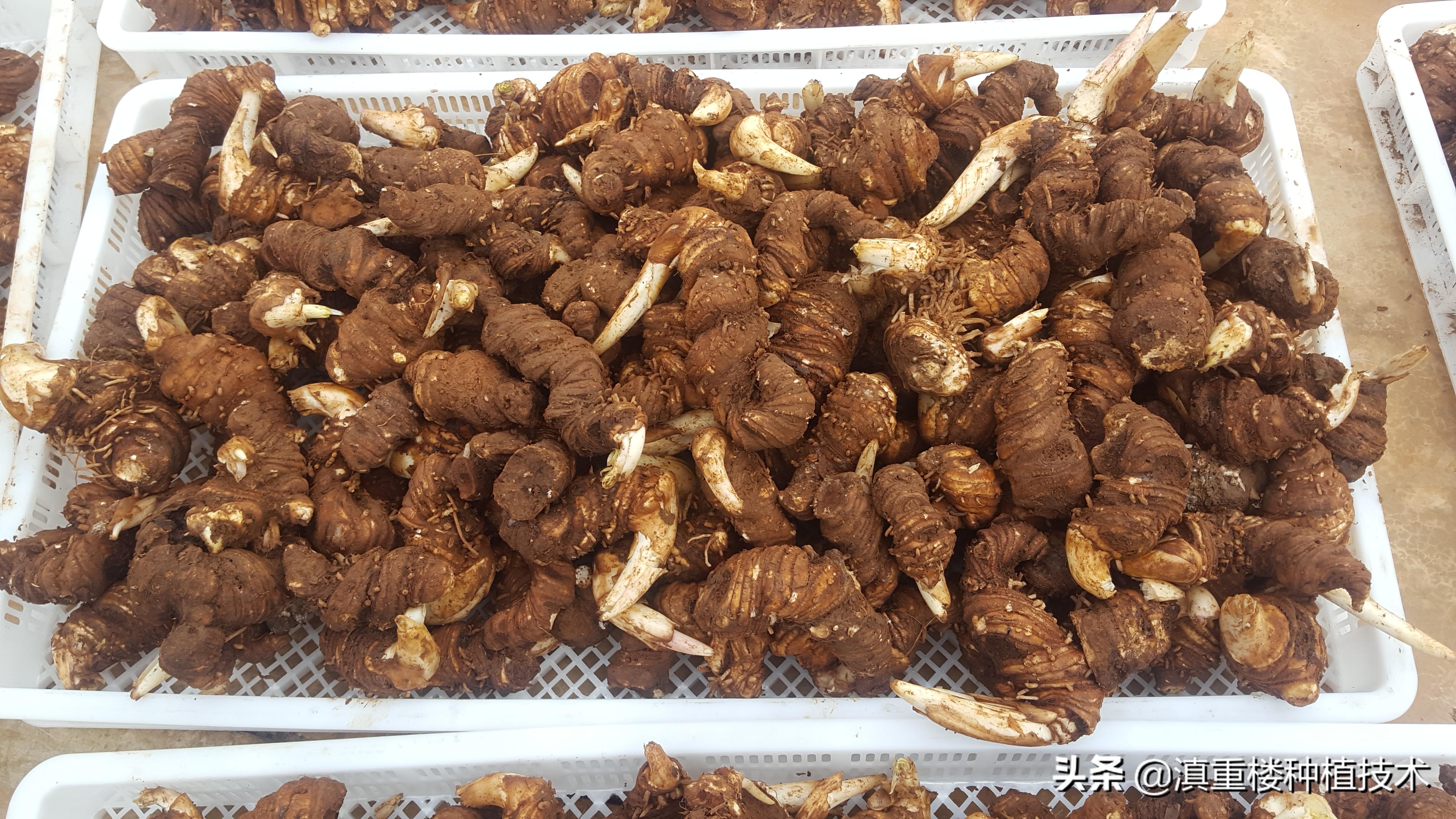 重樓的根莖是其重要的貯藏器官,也是重樓的藥用部位。由于重樓的生長極為緩慢,自然狀況下重樓種子萌發(fā)需要2年時間,并且種子萌發(fā)后生長也極為緩慢,重樓光合作用所生產(chǎn)的營養(yǎng)物質(zhì)就貯存在其根莖中,每年地上部分生長死亡形成莖痕,可以通過莖痕的多少計算出重樓的生長年限,其根莖呈橫走狀,野生狀況根莖一般呈圓柱形,栽培條件下由水分、營養(yǎng)充足,生長呈幾何倍數(shù)增長,根莖一般呈頭大尾小螺絲形。