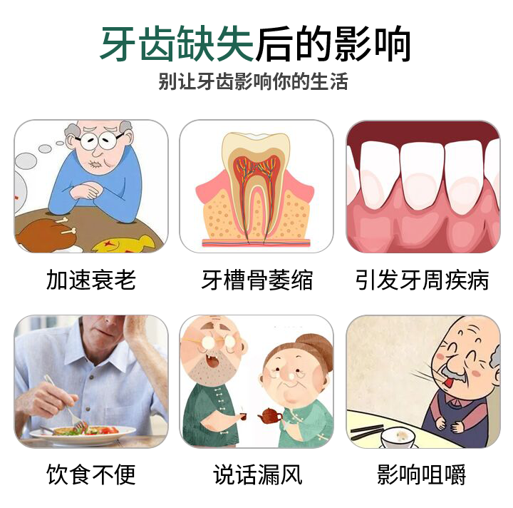 牙齒缺失會引起鄰牙松動、對牙伸長、引發(fā)牙周病終牙齒脫落等一系列問題。種植牙是醫(yī)學界公認的理想修復方式,被譽為“人類的第三副牙”。相比活動假牙不舒服、難清洗、容易引起口腔黏膜病變,種植牙更穩(wěn)固耐用,舒適美觀,咀嚼功能好。